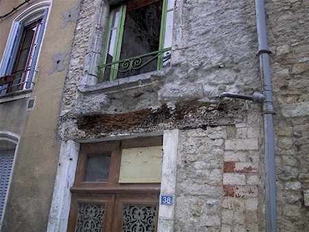 | Rising damp and water penetration can damage surface finishes. Richard Cortis can advise on options and available treatments for water penetration and rising damp. | Some buildings may appear OK but may have substantial underlying defects. Have a look at the nasty sag in the balcony. Richard Cortis can arrange professional advice to determine options for rectification. |